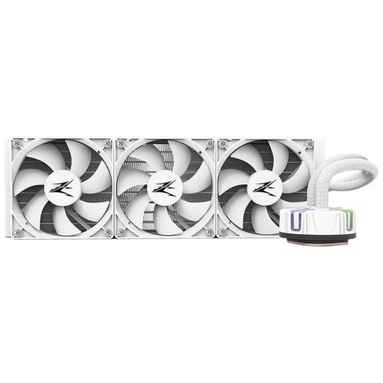 Vodný chladič určený na chladenie širokého spektra procesorov. Vyznačuje sa vysokou kvalitou, výkonom a spoľahlivosťou. Disponuje tromi 120 mm ventilátormi. Odolné opletené hadice sú dlhé 400 mm a vďaka dostatočne širokému priemeru zaručujú plynulý prietok chladiva. Chladič má ARGB podsvietenie integrované v chladicou blok, vďaka ktorému si môžete úplne prispôsobiť vzhľad chladiča.
